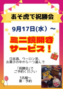 あそ虎で祝勝会はいかがでしょう