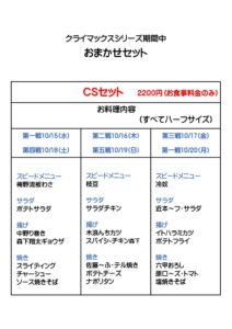 クライマックスシリーズは、お料理を、CSセット(2200円)のみとさせていただきます。